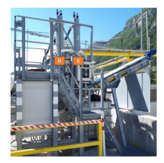 Regarding the cement sludge, a monitoring plan was prepared to assess its moisture and dry matter content. In particular, the sludge was collected from two sampling points within the microfiltration system (Figure 4), as they were considered representative for the use of sludge in concrete production.