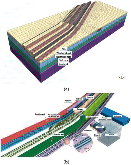 In this study, a numerical analysis based on a 3D continuum was performed to evaluate the stability of railway structures following adjacent excavation under subway and high-speed railway lines. The GTS NX of MIDAS, the finite-element-analysis software for geotechnical analysis, was used for the numerical analyses [13].