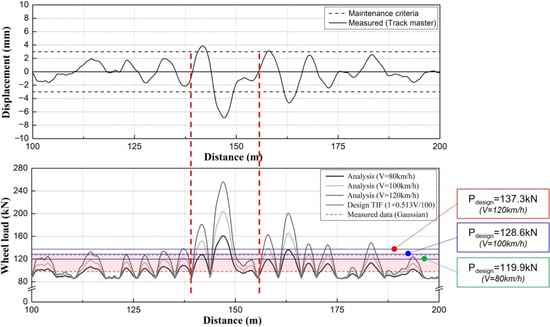 As a result of the correlation analysis between track irregularities and Wheel-Rail interaction force, as shown in Figure 20 and Figure 21, in the section in which track irregularities exceeded the maintenance criteria value, the Wheel-Rail interaction force considerably exceeded the ballasted track representative value and the design load regardless of the train speed [17].