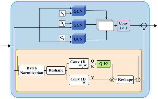 The Transformer was originally proposed for natural language processing. It uses the attention mechanism to achieve parallel capturing of sequence dependencies and to process tokens at each position of the sequence simultaneously. The transformer follows and encoder–decoder structure and only relies on multi-head self-attention [5]. Recently, the self-attention mechanism has also been implemented for visual tasks [6] to enhance the standard convolution. Likewise, Our work uses self-attention mechanism on skeleton data to enhance the graph convolution.