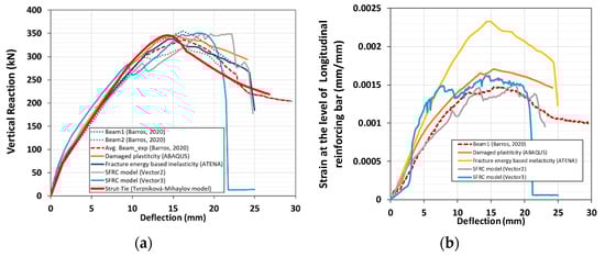 - However, the strains at the level of longitudinal reinforcing differed according to the chosen platform and the model (the continuum-damage, fracture energy-based inelasticity, and modified MCFT models). The continuum-damage model accurately predicted strain at the level of the bottom reinforcement.