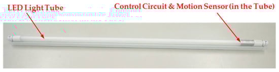 The power consumption of the new sensor LED light tube is reduced by 90 percent in the low-light mode compared to that of the high-light mode. However, the brightness in the low-light mode is only 50 percent of that in the high-light mode. Therefore, it is recommended to use this new sensor LED light tube in building parking lots, corridors, staircases, or toilets. As shown in Figure 2, without replacing the lamp holder, this tube can substitute the original tube directly, and its essential brightness remains the same.