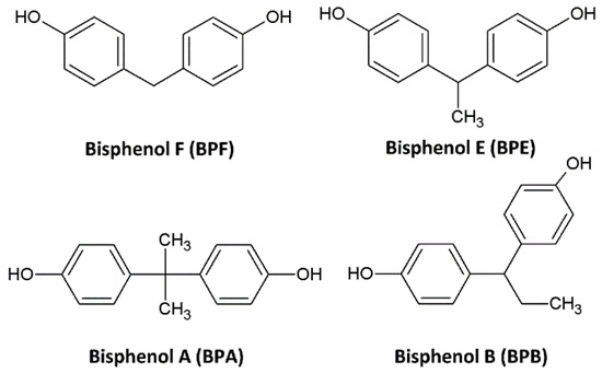 - Usman, A.; Ikhlas, S.; Ahmad, M. Occurrence, toxicity and endocrine disrupting potential of Bisphenol-B and Bisphenol-F: A mini-review. Toxicol. Lett. 2019, 312, 222–227. [Google Scholar] [CrossRef]