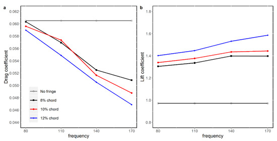 3.2. Effect of the Extended Flapping Fringe on the Lift and Drag Coefficients
