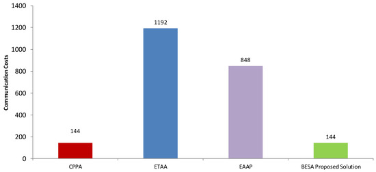 A graphic representation of the comparison results in Figure 10 is provided. In comparison to the three other approaches—CPPA [8], ATAAP [22], and EAAP [9]—the BESA solution has a lower communication cost.
