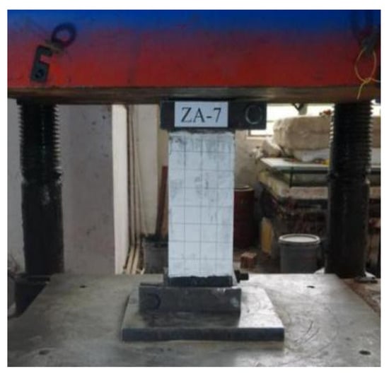 According to the standard test method (Chinese code GB/T 50081-2002 [31]), 24,150 mm × 300 mm cylinder concrete blocks were reserved and divided into eight groups. At the same time, the concrete standard samples and the column specimens were standing indoors and cured under identical conditions for 28 days.