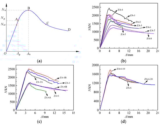 The axial load-displacement curves of specimens are shown in Figure 6.