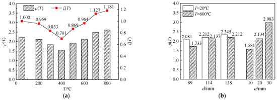 where μ(T) and μ0 are the axial compression deformation coefficient of the specimens subjected to high temperature and ambient temperature, respectively.