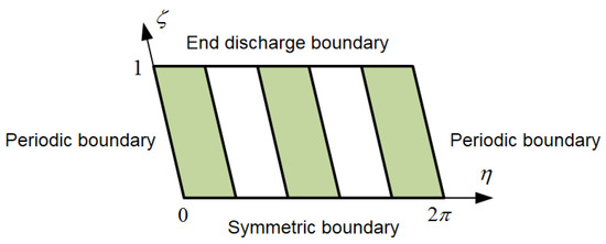 The schematic diagram of the boundary of the herringbone grooved journal bearing is shown in Figure 6. The static Reynolds equation of the HGJBs adopts Reynolds boundary conditions, namely:
