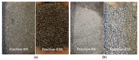 Materials used in this work: (a) steel slag aggregates (SSA) and (b) natural aggregates (NA).