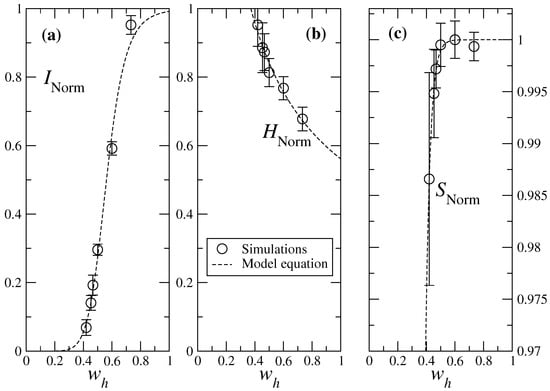 As for the dependence of the entropy S, shown in Figure 5c, we also observe a transition to large entropy values as increases, though the transition seems much more abrupt. At the phase transition near disease extinction we have consistently found lower values of information entropy, clearly defining a stochastic process with long memory. At higher disease transmission rates (higher ) entropy becomes higher and more stable, evolving towards a short memory stochastic process. This dichotomy defines the nature of transmission stability and may be useful in defining how distant a malaria time series is from a situation of disease extinction.
