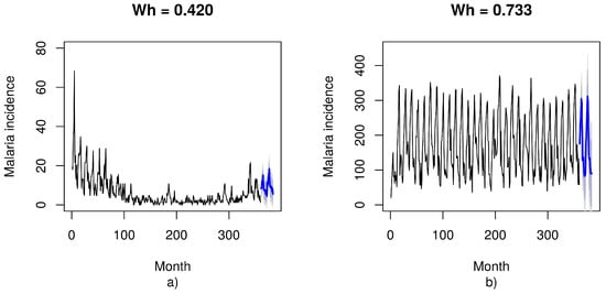 The utility of time series models is still a long way from becoming standard practice in malaria prevention. Differences in climate and geographic factors between world regions act as confounding factors in the strictly mathematical time series approach, lowering malaria forecast precision. In recent years the Box–Jenkins theory has become a consistent development in malaria forecasting [5,18,35,36]. However, little attention has been devoted to the Hurst theory, information entropy, short- and long-memory stochastic processes or long-range dependence. It is remarkable that the Hurst theory was initially implemented in the field of hydrology, as malaria surges are clearly correlated with rainfall, temperature and climate seasonality [6].
