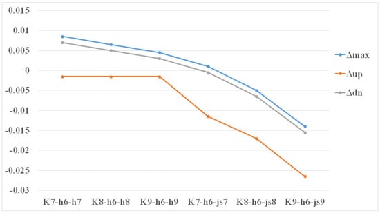 Figure 8 shows that the manufacture of the ring with the Js fit does meet the purpose of the research. First, in this case, a large negative allowance of up to 0.015 mm can arise. Second, a very large clearance of up to 0.079 mm may appear.