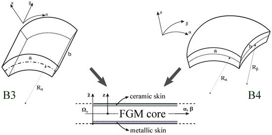 Figure 2. These equations are modified using 3D constitutive equations for Functionally Graded Materials (FGMs) and general geometrical relations for shells in