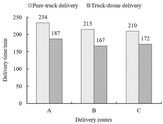 - Compared with traditional truck delivery, truck–drone delivery can save delivery time by 20.1% in the numerical experiment, which can guide logistics enterprises to complete the delivery tasks in less time.