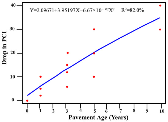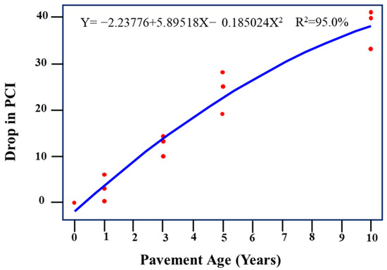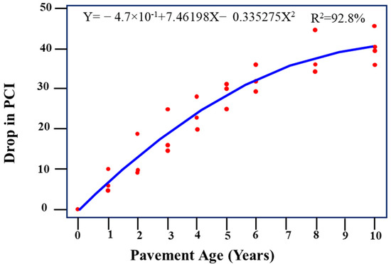 - For each group, a regression model was developed, as the drop in the PCI value for each traffic level and PCI initial value, while the other factors were used as the predictors for each group of homogeneous sections.