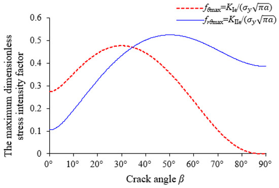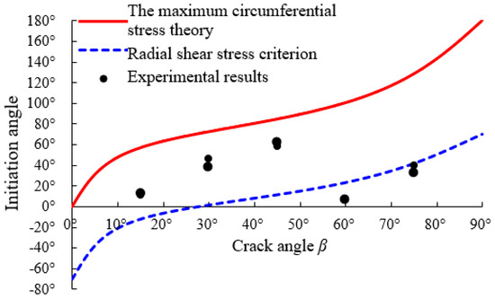 - With the maximum circumferential stress theory, it is difficult to depict the fracture propagation of non-closed cracks under compression. When KI < 0, a non-closed crack under uniaxial compression will have a mode-I stress intensity factor. The circumferential compressive stress created by the mode-I stress intensity factor will restrain the circumferential tensile stress caused by the mode-II stress intensity factor. If and , the rupture angle will be close to the direction of the maximum radial shear stress for a non-closed crack.