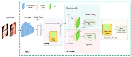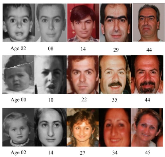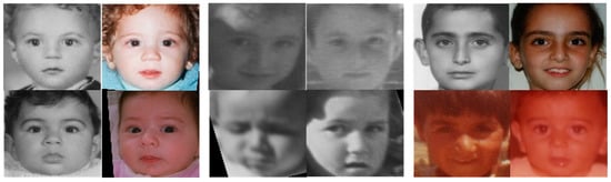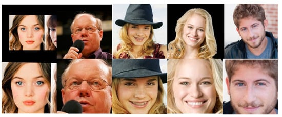Figure 6. The CACD dataset is used as a public benchmark for CAFR, and it is composed of 163,446 images of 2000 celebrities. The images reflect various shooting conditions, such as illumination variations, pose variations, age variations, makeup, and practical scenarios. FG-NET contains 1002 images of 82 people with an age range from 0 to 69; FG-NET has larger age gaps than CACD, but it contains only a few images of a small number of people. The CACD dataset can effectively reflect the robustness of our CAFR algorithm.