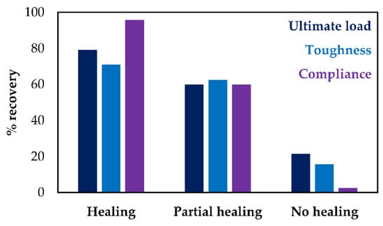 Ultimate force, toughness and compliance recovery for the healed (Beam 4), the partially healed (Beam 11) and the unhealed beam (Beam 9). The load-crack opening curves of these samples are reported in Figure 5.
