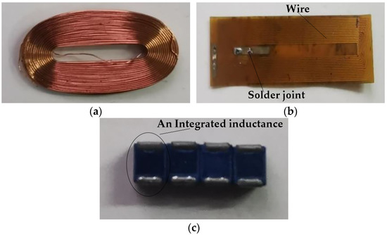 (a) Coils made of enameled wire; (b) Flexible printed coils; (c) Integrated inductance.