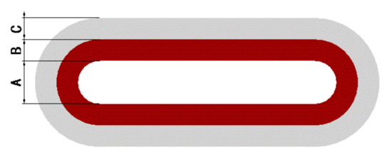 After researching coil arrays, coil structure parameters, shown in Figure 18, are also essential to be determined. In Figure 18, A, B, and C are, respectively, the width of the air gap, inner coil, and outer coil. Different turns of a coil or different wire diameters can be studied by controlling for a single variable A, B, or C. Moreover, it can be considered from the following aspects.