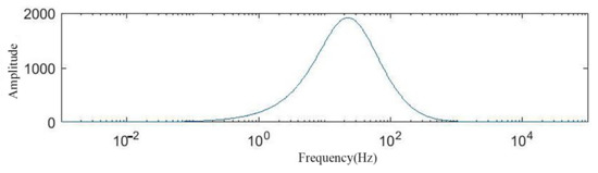 The designed circuit is simulated and analyzed. Most defects’ frequency is concentrated at about 20 Hz at the wire rope’s average running speed (1–2 m/s). The frequency band was set at 0–300 Hz, and the central frequency was 20 Hz. According to the filter’s cut-off frequency, suitable parameters of resistors and capacitors were chosen. The frequency response curve is shown in Figure 21. The central frequency is 21 Hz, and the amplification factor is 1900. However, the amplification factor decreases to 150 at 300 Hz.