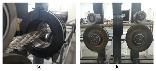 With the continuous improvement of safety awareness, wire rope inspection has been used in many scenes. The practical goal in lots of applications is to realize the safe use of wire rope and avoid wastage caused by prematurely being replaced [4,5]. At present, most scenes have to take the measure of regular replacement of wire rope, which not only contributes to much pressure on resources but also cannot eliminate the risk of sudden fracture. To realize the real-time performance of wire rope inspection without affecting normal production activities, wire rope inspection must develop from off-line handheld to in-service inspection. In-service detection equipment runs under high load for 24 h [6].