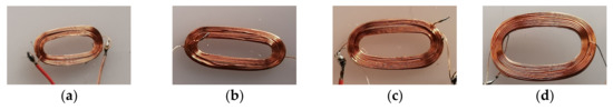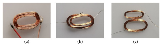 Induction coils have advantages such as low cost and endurance, so they are widely used in wire rope defect detection. Additionally, induction coils have many other forms, including coils made of enameled wire, flexible printed coils (FPC), and integrated inductance. And the three different kinds of coils shown in Figure 11 are tested in the next experiment.
