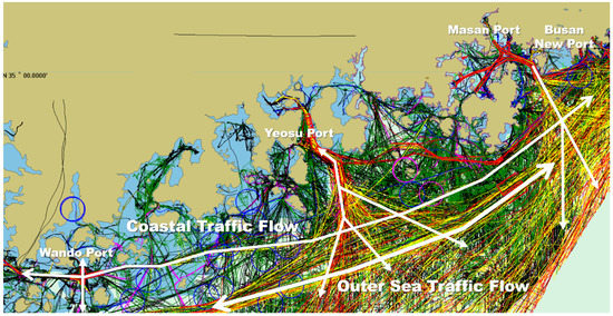 Figure 2 shows the traffic flow formed on the southern coast of Korea.