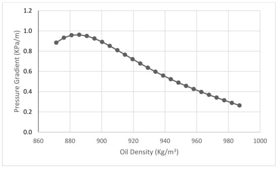 Water density and oil density have opposite effects on pressure losses. Varying the fluid density tends to affect the core eccentricity. Although the effect of eccentricity in WAF is not a well-studied phenomenon [8], the current study sheds some light on the topic. Water density seems to have a linear effect, whereas oil density has an inverse influence on friction losses. Oil density increases the pressure gradient within the lower range, while the gradient decreases as the density exceed 900 kg/m3. A more practical investigation is required in this field.