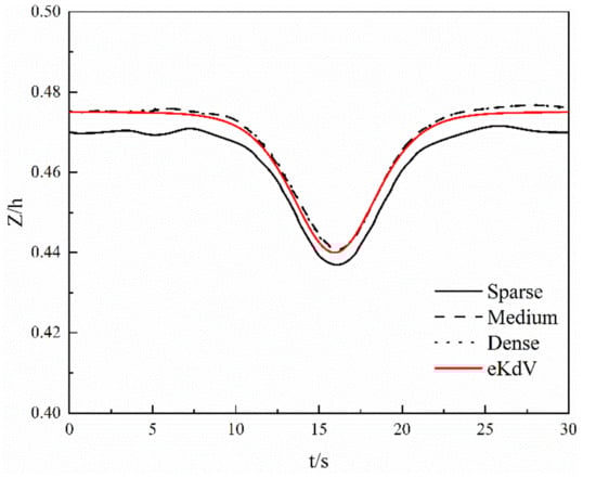The common inner isolated wave theory solutions are KdV, mKdV, eKdV, and MCC theories, and Cui et al. have investigated the applicability of different theories based on the inner isolated wave dispersion and nonlinear parameters. Based on the established dimensions of the simulated computational domain, the eKdV theory is chosen as the theoretical equation to describe the internally isolated waves in this paper [].