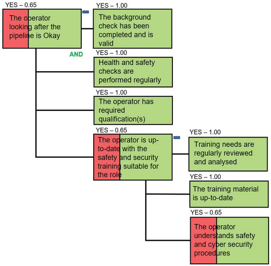 One of the key concepts in dependency modelling is the probability of success/failure of each node. This is because dependency modelling builds on the notion of conditional probability, which is the probability of an event occurring given that another event has taken place. In a DM, every childless leaf node is assigned a probability of being in a desired state or being successful. The probability is assigned based either on expert opinion (subjective) or based on historical data, when available (objective) [4]. The conditional probability of a parent node being successful is calculated based on the success probabilities of child nodes. Dependency modelling is a quantitative risk assessment method that facilitates risk sensitivity analysis that shows which system dependencies present the highest risk to the success of the core goal.