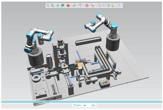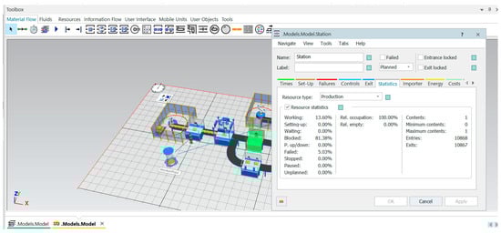 The research study was carried out based on resources, such as books, collections of articles published in specialized impact factor journals and published in international conferences as well as using a state-of-the-art software for production simulation and digitalization. Thus, in a case study, we implemented the Tecnomatix–Plant Simulation 15 [21] and Process Simulation software package (Siemens PLM software, Munich, Germany) used in Industry 4.0 to analyze and assess a system’s performance through modeling and simulation, in this case for a flexible manufacturing system. The EdrawMax software (Shenzhen Edraw Software Co., Limited, Shenzhen, China) [22] was used for mapping and analysis of the value stream map to offer Lean solutions for improving the value chain processes and application in Industry 4.0.