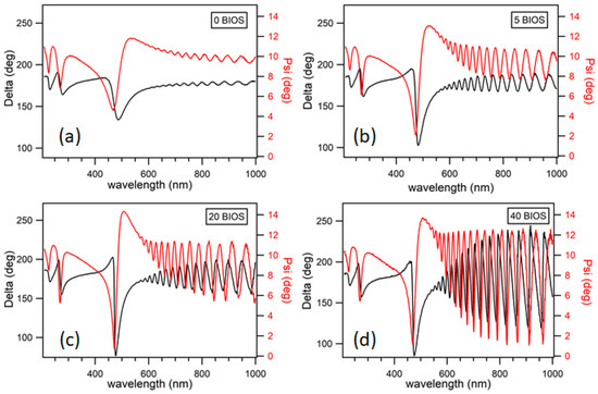 - Herzinger, C.M.; Johs, B.; McGahan, W.A.; Woollam, J.A.; Paulson, W. Ellipsometric determination of optical constants for silicon and thermally grown silicon dioxide via a multi-sample, multi-wavelength, multi-angle investigation. J. Appl. Phys. 1998, 83, 3323–3336. [Google Scholar] [CrossRef]