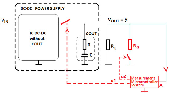 There are more recent studies on the operational safety of equipment, in particular of power converters, from several perspectives. A wide range of analysis and decision-making techniques are used for this purpose, nowadays reaching the use of machine learning techniques [10,11,12]. Specific interfaces and algorithms, suitable for interaction with converters, are required for their application. Article [13] considers an ESR monitoring scheme without a current sensor, based on the calculation of the parameter’s values from the measurement of the AC component of the output voltage at precise times of the output switching cycle. In [14] a method of ESR monitoring is proposed based on the jump of the output voltage and the measurement of the ripple voltage output and inductor current. A model-free predictive control strategy, for the online estimation of the ESR and capacitance, aimed at the continuous evaluation of the electrolytic capacitor condition is discussed in [4]. The capacitor current and output voltage acquisitions are required.