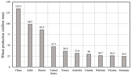 Total wheat production in the top ten countries in 2021. (Data source: FAOSTAT).