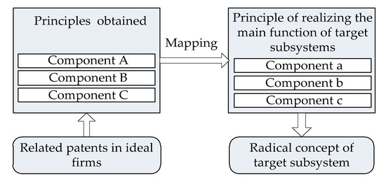 The technical system design is to provide specific functions [74]. Similar functions can be achieved with different structures and principles. The analogy process is the transfer of structures or principles with similar functions from one system to another new system to achieve the desired function of the new system [75]. Guided by analogy, we can build radical concepts of the target subsystem with cross-domain knowledge gained from the above process. The process is shown in Figure 6, and details are as follows: