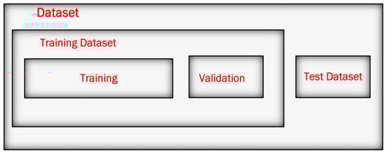 After selecting a proper dataset, its distribution and preparation is the most important step while developing a model. The training is performed on 80% of the hybrid dataset [38], while 20% of the dataset is test data and used to perform the experiment as shown in Figure 5. In this work, initially, the dataset has been split into training, validation, and test. The model is trained on the training set, while the validation set is used for validating the model parameters, keeping the testing data aside.