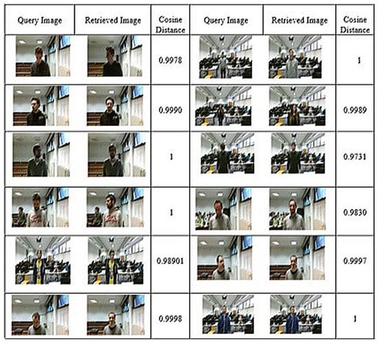 During the experiment, test data is used to evaluate the performance of the proposed technique. RIS-DUGL method does not use any prior knowledge such as labels (except those used for the fine-tuning) and other metadata of images. Results related to WANG, IAS- RGB, and Merchant datasets are shown in Figure 13, Figure 14 and Figure 15, respectively, along with their cosine similarity scores. With various conditional query images such as left, down, and right side poses of faces. It also covers the image’s sufficient depth to recognize the subject lying far from the sample image for the retrieval of its more visible version. In Figure 13, some of the results collected on the WANG dataset and the proposed framework have recognized the desired subject on the sample image having multiple subjects. It also covers color manipulation and recognizes the desired subject with background conditions. In Figure 14, it can be seen that some of the query images have equal participation in the desired object and the background information. Here, the proposed RIS-DUGL technique gives more value to the content of the desired subject and finds out its more visible version, which is a prominent feature for the sake of person identification. Figure 15 shows results using the Merchant dataset where the retrieved scale and rotation invariant best match. By using precision as a performance measure, the proposed RIS-DUGL technique has achieved 98.46% accuracy.