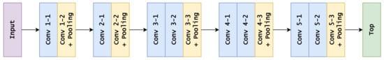 The VGG16 [36] base architecture is presented in Figure 1. However, the top of the network is replaced with the previously computed according to the dataset.