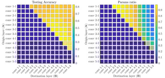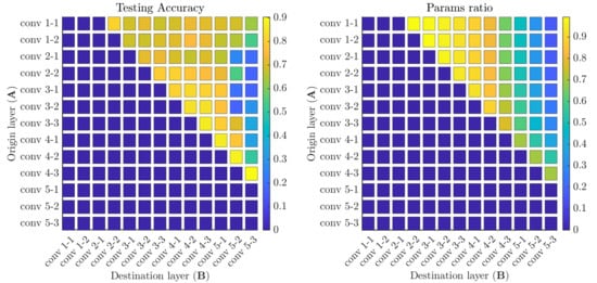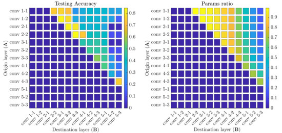 Example of some sub-models that can be generated using the proposed pruning method on a VGG16 architecture, considering different layers as the origin () and the last convolutional layer as the destination (B).