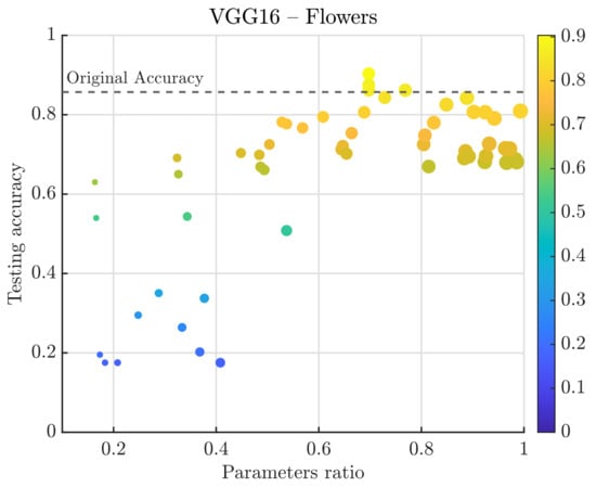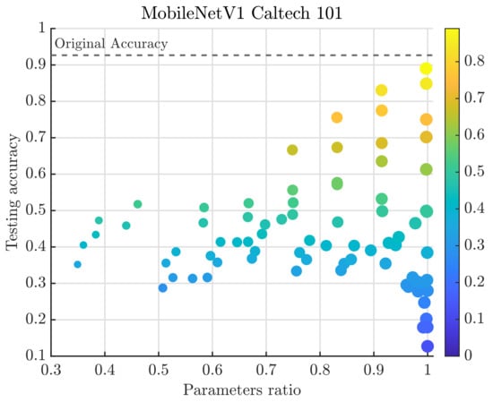 In the experiments, first, a pre-trained network is selected. VGG16 [36], MobileNet [37], and MobileNetV2 [38] are used as the base architectures because they allow us to explore the impact of removing entire convolutional layers, including those with pooling, batch-norm, and residual connections.