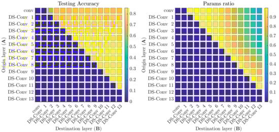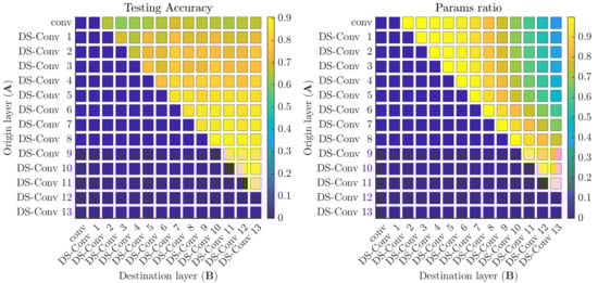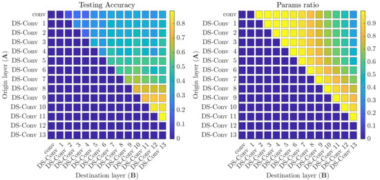 The first convolutional layer and the depth-wise separable convolution are used as the candidates for the origin and destination layers. Therefore, the possible re-connections between the layers generate 78 different sub-models for each dataset.