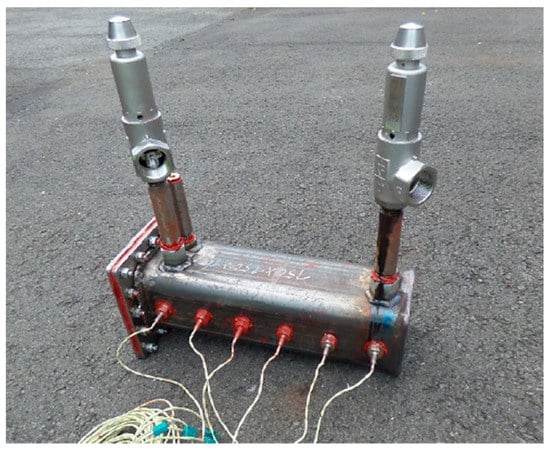 Having to deal with flooding of internal spaces of a ship, it is also necessary to check the behaviour of permeability with pressure values greater than atmospheric by means of an additional water absorption test, varying the level of overpressure on a fixed time interval. For this test, a cubic foam specimen of 100 × 100 × 100 mm was used. Foam sample specimens were fully immersed in water within a pressure vessel, see Figure 6. Compressed air was then injected into the vessel in a controlled manner, generating water overpressures acting on the foam of 0.5, 1, and 1.5 bars, with watertight integrity typically rated up to 1.5 bar (15 m water head). The test was carried out for a time interval of 3 h, being an appropriate time scale compliant with Safe Return to Port regulations. Table 2 reports the results, where an increase in foam permeability can be observed at water pressures ranging up to 0.5 bar, moving from 1% to 2% permeability. Interestingly, at pressures beyond this point, it was found that the foam permeability was insensitive to increasing pressure, remaining at a constant value of approximately 2%.