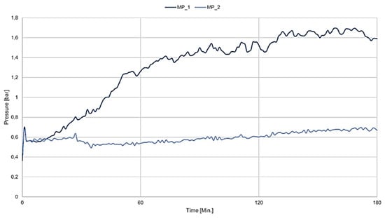 Foam water absorption as a function of overpressure during 3 h of exposure.