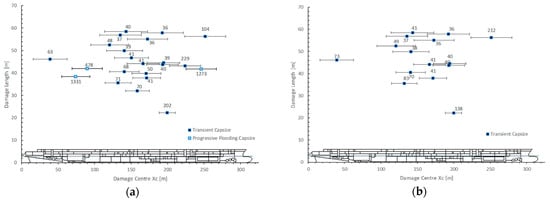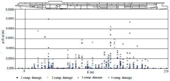 Regardless of the selection of one of the two methods to derive the damage characteristics distributions, it is necessary to determine the relevant cases needed to assess ships’ survivability. The measure of survivability is given by an index A defined as follows by the actual regulatory framework []:
