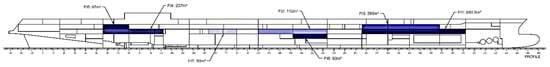 The results were scrutinised further in order to identify vulnerable design features within the vessel design and, more specifically, the sources of this vulnerability to transient cases. Through doing so, inadequate cross-flooding/equalization within machinery and accommodation spaces was identified as a primary causal factor. The means of transverse communication within these spaces are predominantly manhole-sized openings and narrow corridors. An overview of the primary sources of cross-flooding restriction is provided in Figure 21, where they are marked in blue.