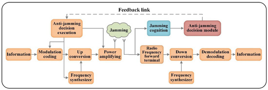 In the past a few decades, many technical measures were proposed to increase the anti-jamming performance of wireless communications systems, which mainly include direct sequence spread spectrum, frequency hopping (FH), time hopping, adopting ultra-wideband signals, and so on. These traditional measures have effectively improved the performance of wireless communication systems [1,2,3]. However, with the increasingly complex electromagnetic environment, the aforementioned anti-jamming technology has obvious shortcomings. Some of them cannot even ensure the reliable operation of wireless communication systems anymore. Therefore, enhancing the performance of anti-jamming measures and developing new and intelligent anti-jamming methods to improve the adaptability of wireless communication systems is becoming more and more prominent [4].