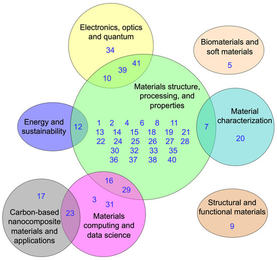 Area of MSE in which described applications are circumscribed. Numbers 1 to 41 identify the works listed in Table 4 (column “Work Number”).