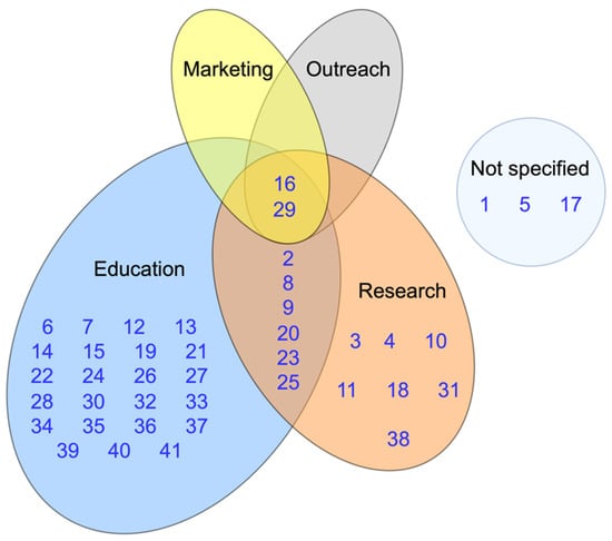 Target sector of the described applications. Numbers 1 to 41 identify the works listed in Table 4 (column “Work Number”).